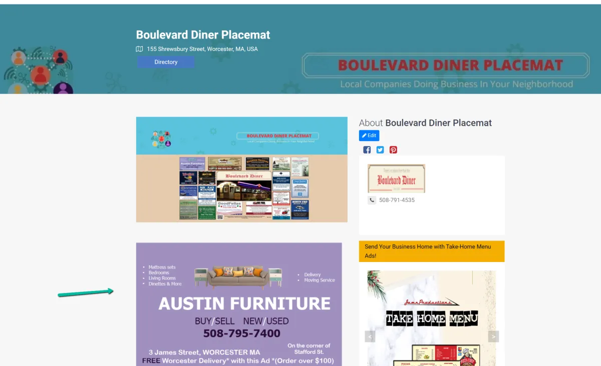 You get an enlarged version of the ad you are using in the local bar, diner, or restaurant.